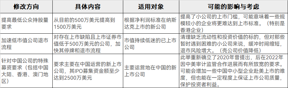 3、计划赴美上市的中国企业:除需遵循既有的上市标准外,还需确保IPO募集额达到2500万美元的新门槛。这一变化或促使部分原计划上市的中国企业重新审视上市地点及融资策略。